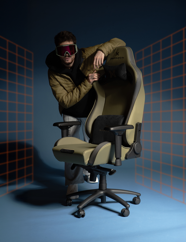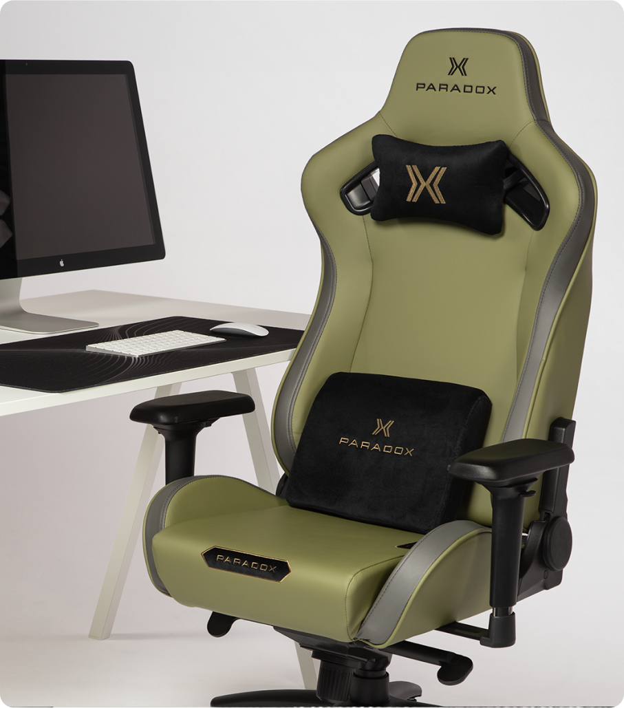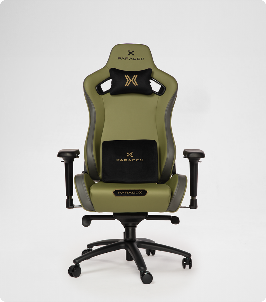 La Serie Commander Paradox cuenta con un cojín lumbar que alinea tu columna vertebral y alivia la tensión de la zona lumbar. Fabricado con espuma viscoelástica receptiva y envuelto en terciopelo del mismo color, combina perfectamente el soporte ergonómico con el refinamiento estético.