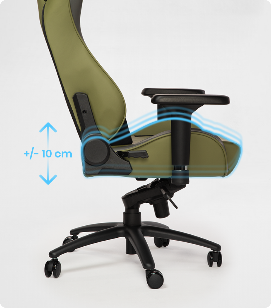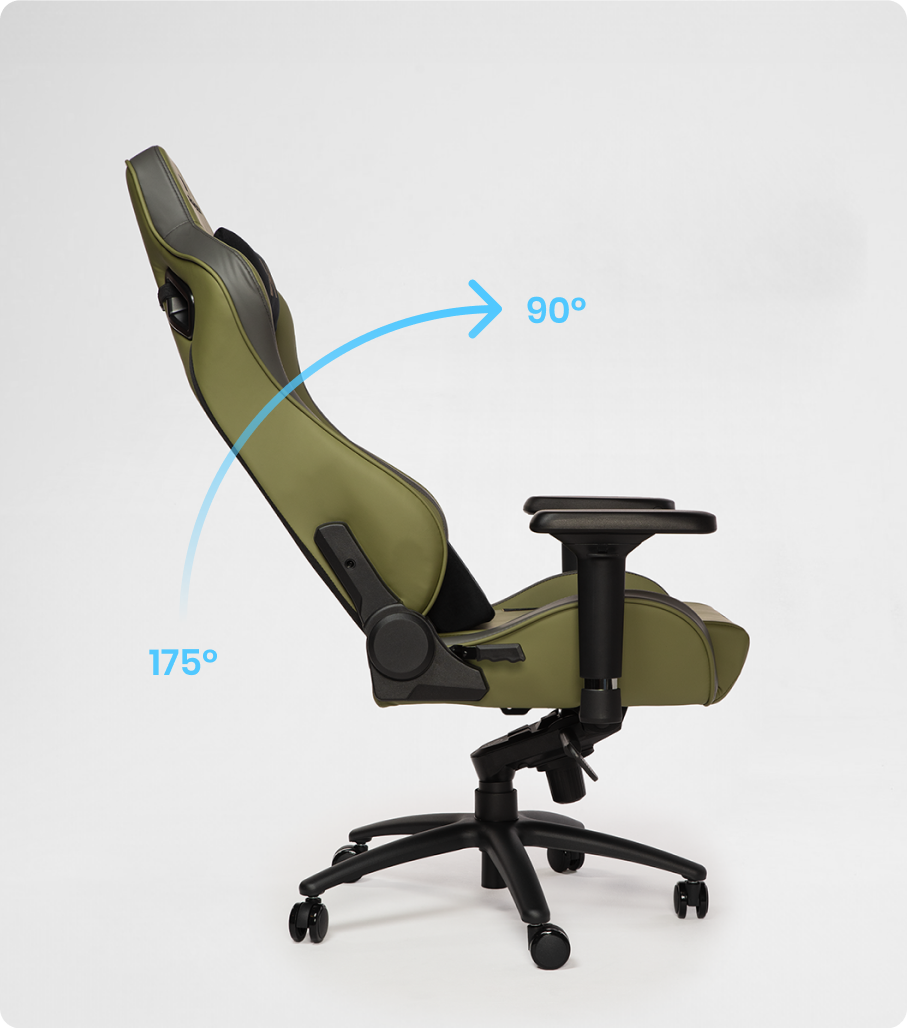 Ajusta y bloquea el respaldo en cuatro posiciones para adaptarse a tus necesidades. Ya sea que estés jugando, trabajando o tomando un descanso, cambiar el ángulo del respaldo ayuda a reducir la tensión, mejorar la postura y mantener tus músculos relajados durante todo el día. Puedes ajustar la resistencia de inclinación del respaldo según tu peso corporal y preferencias. ¡Simplemente gira la perilla debajo de tu asiento hacia la izquierda o derecha!
