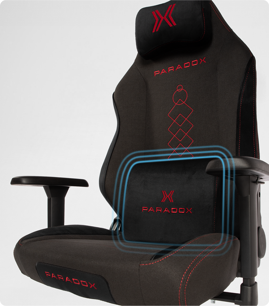 La Serie Vanguard cuenta con un cojín lumbar que alinea tu columna vertebral y alivia la tensión en la zona lumbar. Fabricado con espuma viscoelástica receptiva y envuelto en terciopelo a juego, combina perfectamente el soporte ergonómico con el refinamiento estético.