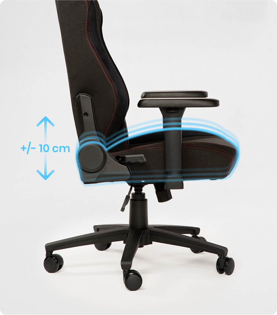 Perfectamente adaptado para personas entre 165 y 185 cm, nuestro asiento totalmente ajustable asegura un ajuste personalizado. El mecanismo neumático avanzado TitanCore permite un ajuste de altura sin esfuerzo: simplemente tire de la palanca y levante ligeramente para subir el asiento, o presione mientras está sentado para bajarlo. Alcance fácilmente la posición ergonómica ideal – sus rodillas deben formar un ángulo de 90 grados, y sus codos deben descansar cómodamente a un ángulo de 90 grados sobre su escritorio. Priorice la posición de los codos para optimizar tanto la comodidad como la productividad.