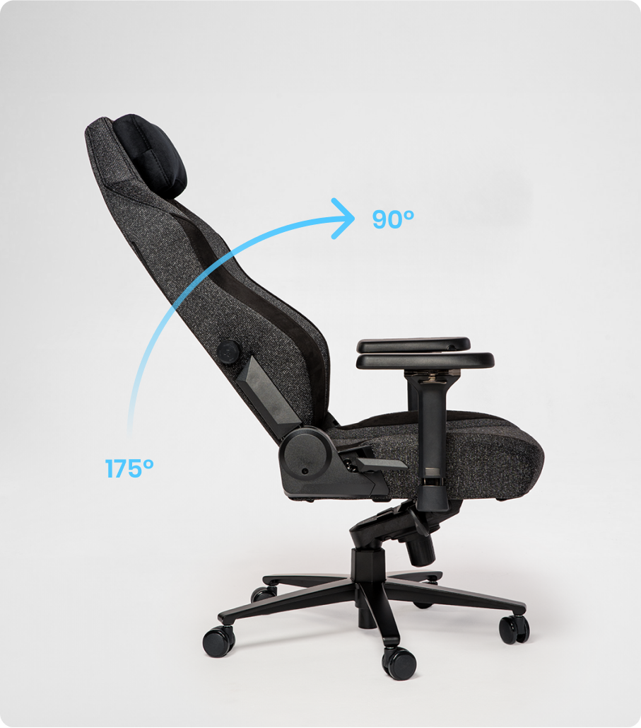 Állítsd be és rögzítsd a háttámlát négy pozícióban, igényeid szerint. Akár játszol, dolgozol, vagy szünetet tartasz, a háttámla szögének változtatása segít csökkenteni a terhelést, javítani a testtartást és ellazítani az izmaidat egész nap. Beállíthatod a háttámla dőlésszög-ellenállását testsúlyod és preferenciáid alapján. Egyszerűen fordítsd el a gombot az ülésed alatt balra vagy jobbra!