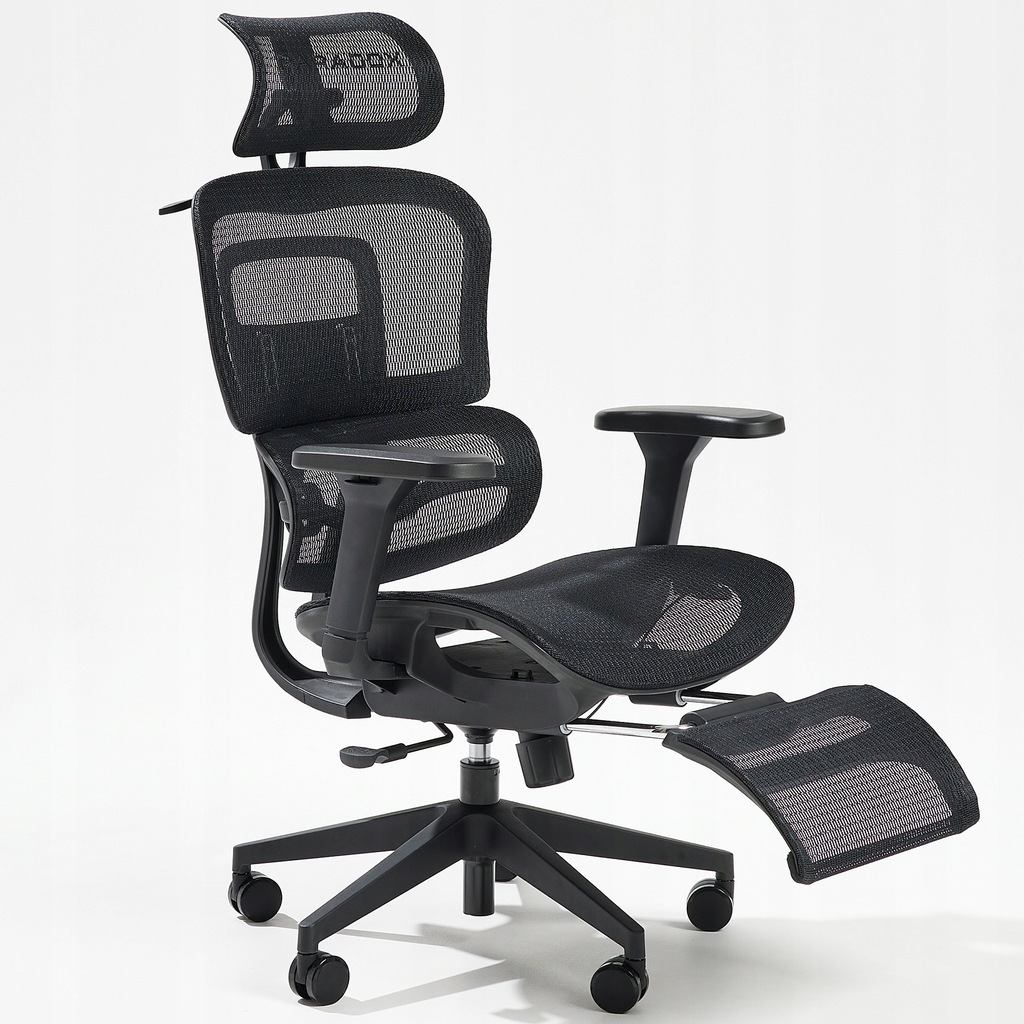 All-black mesh, zero distractions. Breathable mesh, 8+ adjustments, 4D arms, pull-out footrest, 135 kg, 100-day trial.