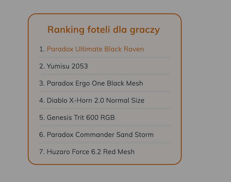 “Ranking foteli gamingowych przedstawi Ci najwygodniejsze i najtrwalsze modele. Na każdym z nich przesiedzisz wiele godzin bez poczucia dyskomfortu, mogąc uzyskiwać lepsze wyniki w grach. Zobacz moją aktualizowaną klasyfikację z opiniami i wybierz coś dla siebie!”