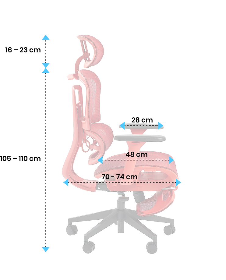 • Ergonomiczny fotel premium z ponad 8 miejscami regulacji, odpowiedni dla osób o wzroście 165–195 cm.