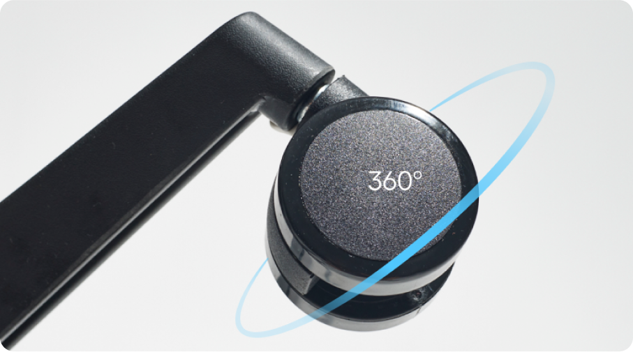Funkcja obrotu o 360 stopni pozwala bez wysiłku obracać się w dowolnym kierunku, zapewniając maksymalną elastyczność i łatwy dostęp do wszystkich obszarów biurka i otoczenia – a wszystko to w ciszy.