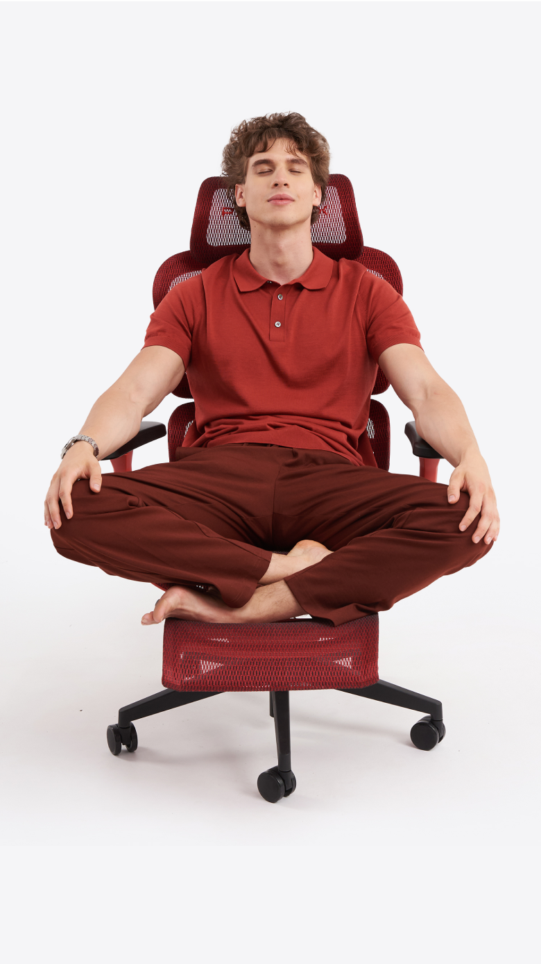 FLOW (swobodne bujanie) – Fotel oddycha razem z Tobą Mikro-ruchy, przenoszenie ciężaru ciała, sięganie po przedmioty – mechanizm naturalnie podąża za każdym gestem. Zapobiega to statycznemu obciążeniu mięśni, wspierając krążenie podczas wielogodzinnych sesji.