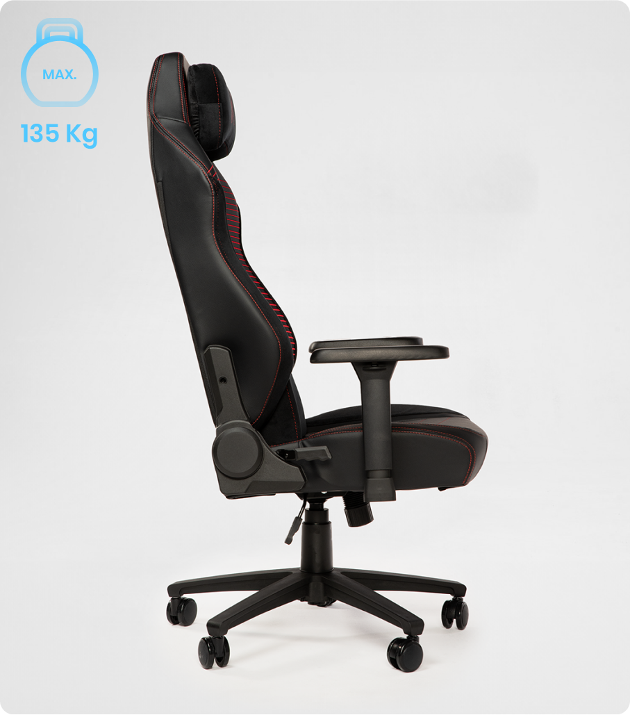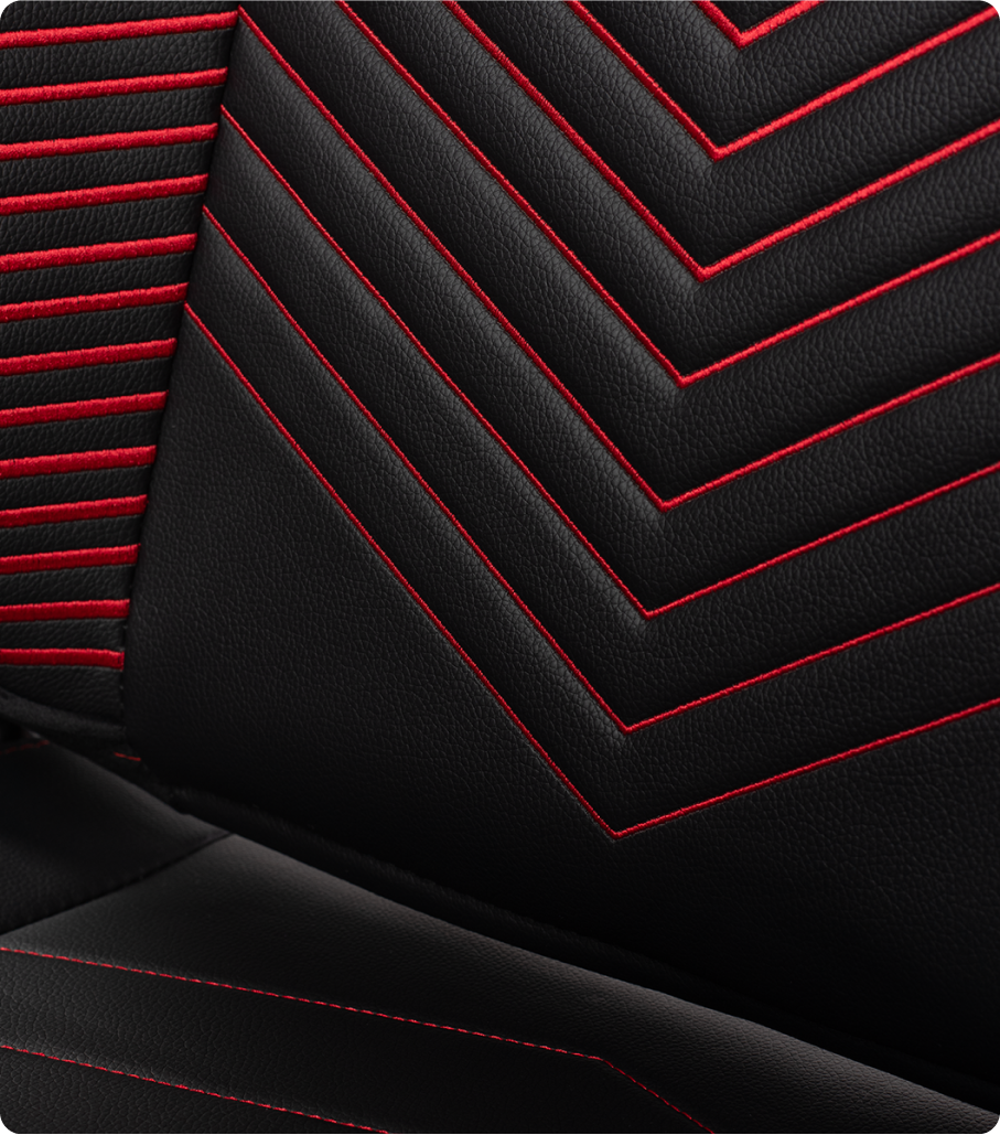 Wysokiej jakości ekoskóra TechRX II jest trwała, gładka i ekologiczna. Akcenty z weluru zapewniają to wyjątkowe, profesjonalne odczucie. Podobnie jak charakterystyczne kontrastowe przeszycia przywodzące na myśl samochody wyścigowe czy luksusowe akcesoria modowe.