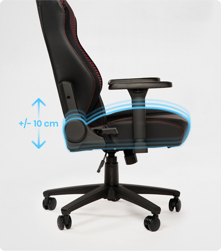 Fotel idealnie dopasuje się do osób o wzroście od 165 do 185 cm dzięki w pełni regulowanemu siedzisku. Zaawansowany mechanizm pneumatyczny TitanCore sprawia, że zmiana wysokości to pestka – po prostu pociągnij dźwignię i lekko się unieś, żeby podwyższyć siedzisko, albo oprzyj swój ciężar, by je obniżyć.