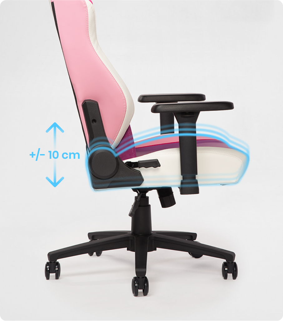 Dokonale prispôsobené pre osoby s výškou medzi 165 a 185 cm, naše plne nastaviteľné sedadlo zaisťuje prispôsobenie na mieru. Pokročilý pneumatický mechanizmus TitanCore umožňuje jednoduché nastavenie výšky: jednoducho potiahni páčku a mierne zdvihni, aby si sedadlo zdvihol, alebo zatlač, keď sedíš, aby si ho spustil. Dosiahni ideálnu ergonomickú polohu s ľahkosťou – tvoje kolená by mali tvoriť 90-stupňový uhol a tvoje lakte by mali pohodlne spočívať v 90-stupňovom uhle na tvojom stole. Uprednostni polohu lakťov, aby si optimalizoval pohodlie aj produktivitu.